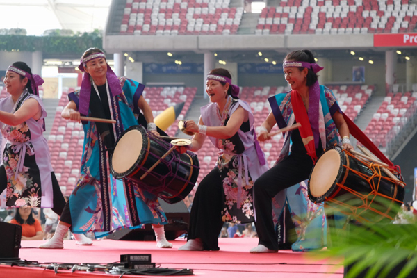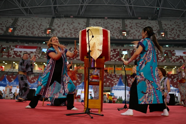 日本人会和太鼓同好会は初心者・経験者どちらも大歓迎!部員のほとんどがシンガポールに来て太鼓を始め、みんなで教え合いながら楽しく練習をしています。伝承系、創作系のどちらの曲にもチャレンジし、夏まつりやチンゲイパレードなど地域の行事へも参加して文化交流を行っています。まずは、「叩いて楽しい!」と思える事が一番!毎回ストレッチから練習を始めますので運動不足の方にもお勧めです。「ドーン!」と身体の芯まで響く太鼓の音はきっとやみつきになります!