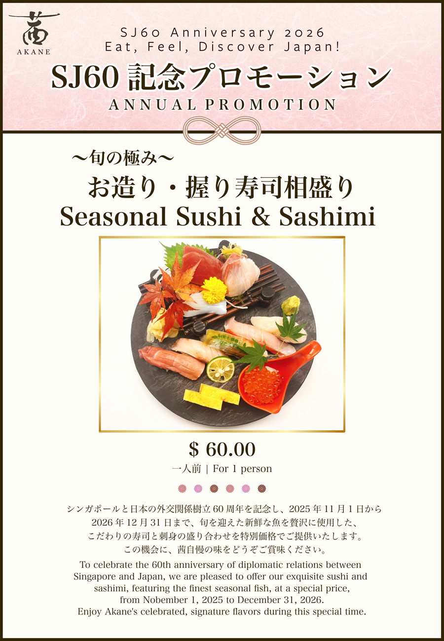 日本・シンガポール外交関係樹立60周年を記念して、2025年12月1日~2026年12月31日までの期間、日本の地方特産品をご紹介してまいります。