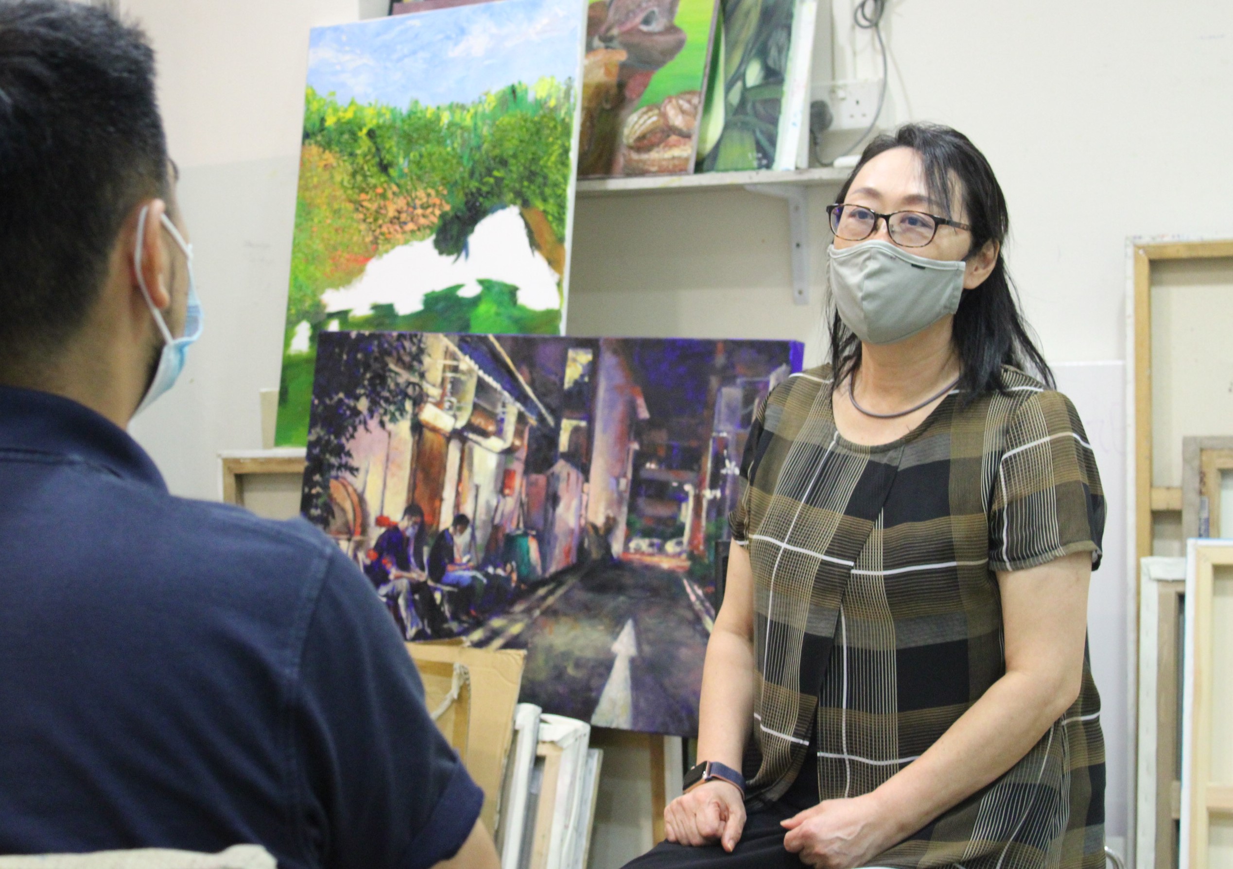 アート教室ミュウでのインタビューの様子
