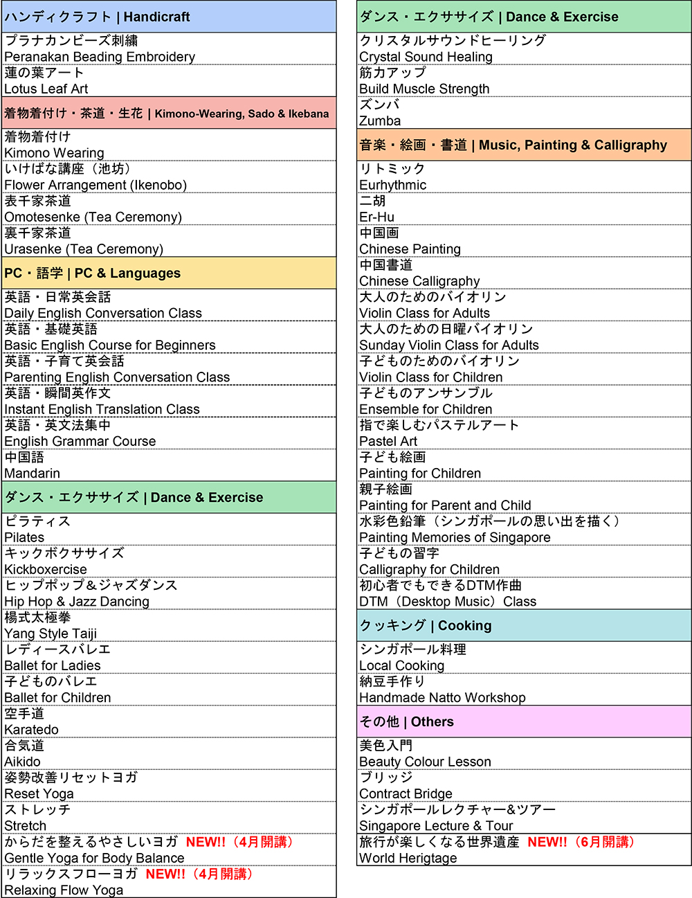 4月開講の講座は、3月10日(火)より申込開始です。講座詳細は3月6日(金)より日本人会ウェブサイトに掲載されますのでご覧ください。