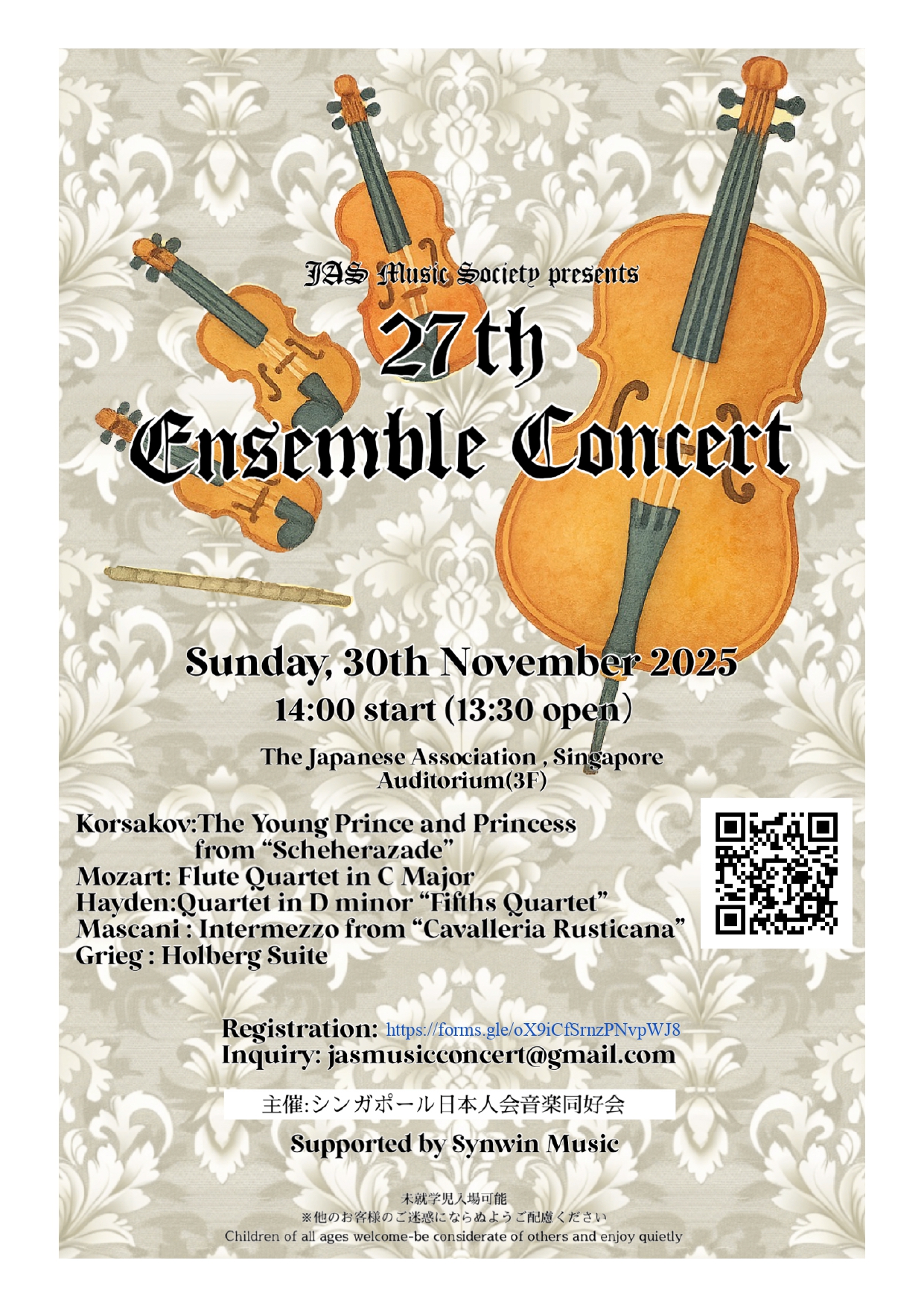 音楽同好会「第27回アンサンブルコンサート」のお知らせ